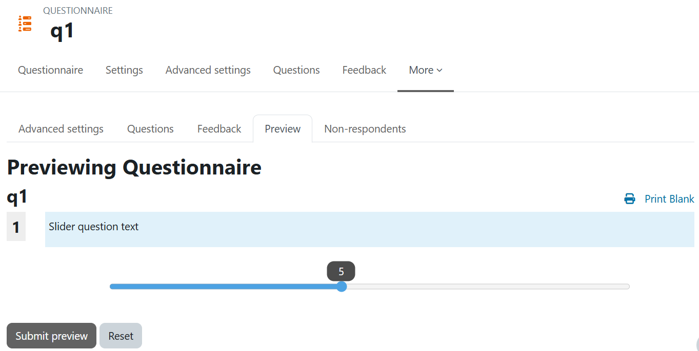 This activity allows you to collect information from course participants. Similar to the Feedback activity, surveys can be used to create questionnaires.