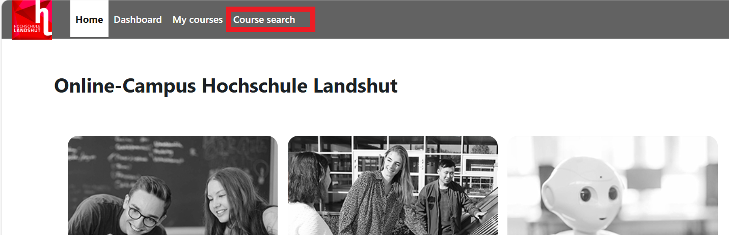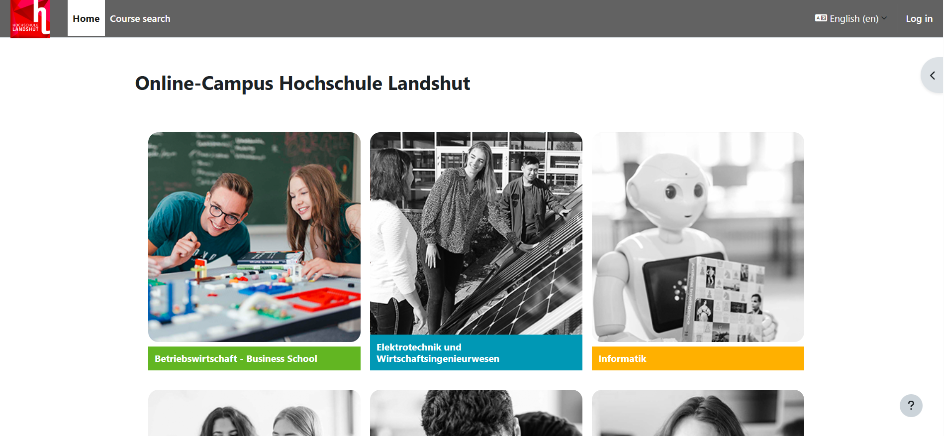 You can reach the online campus of Landshut University of Applied Sciences via this link. Click on Log in at the top right. Click on Zur SSO-Anmeldeseite. You will be redirected to the university’s central Single Sign-On login page, where you can sign in with your university credentials.
