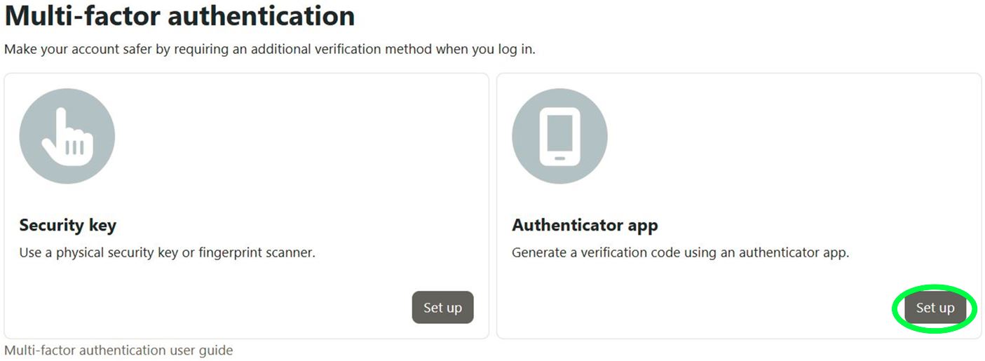 Set upbutton in one of the two sections („Authentication token“ or „Authenticator app“).