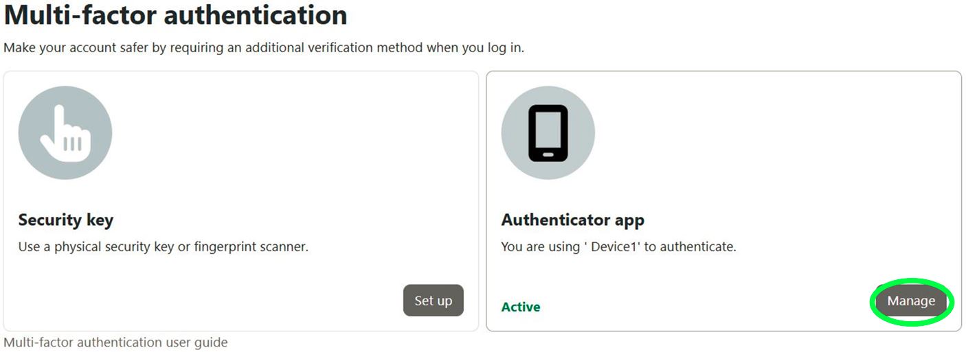 You can also change the second factor (e.g., switch from authenticator app to Yubikey) or add a second „second factor“, so that you can log in using either a Yubikey or an authenticator app.
