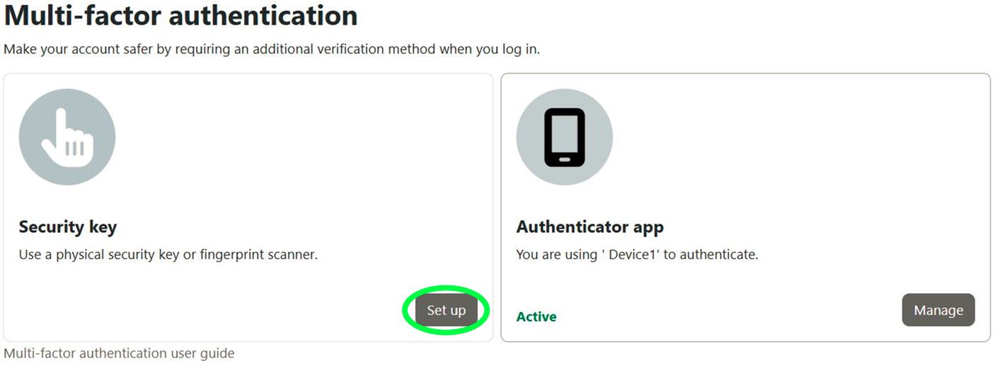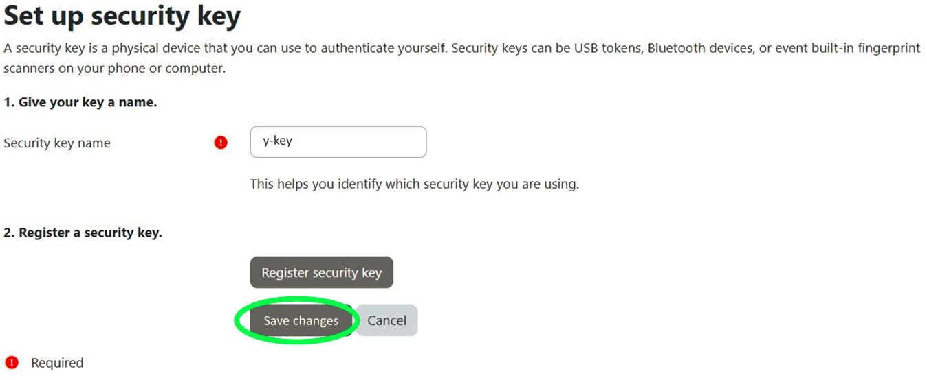 After selecting the „Yubikey“ option, the „Set up Security Key“ page opens: