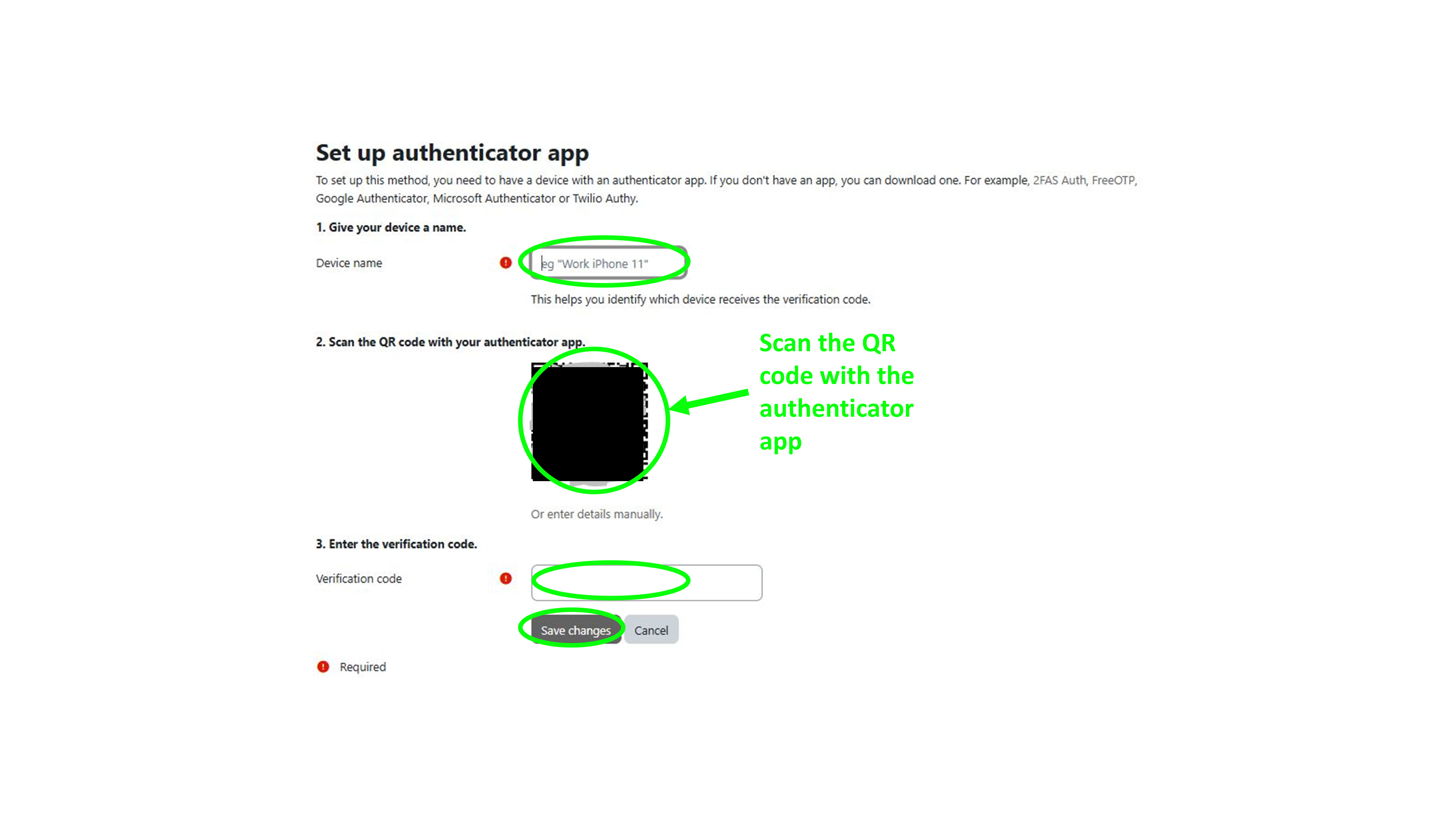 scan the QR code from the screen. - The authenticator app will generate a confirmation code. Enter this