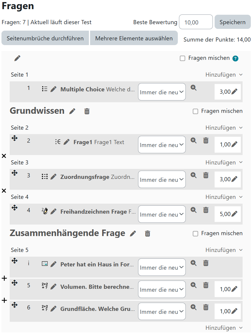 Auch nachdem Sie die Fragen aus der Fragensammlung hinzugefügt haben, können Sie die Fragen noch verändern.
