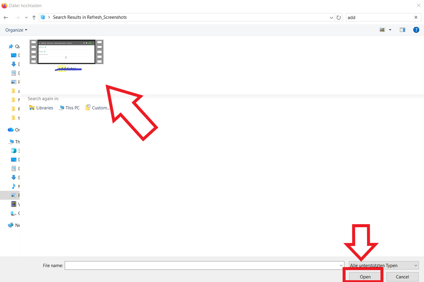 Hinweis: Bitte Videos mit folgenden Formaten hochladen: .mp4, .mov, .avi, .wmv, .wav.